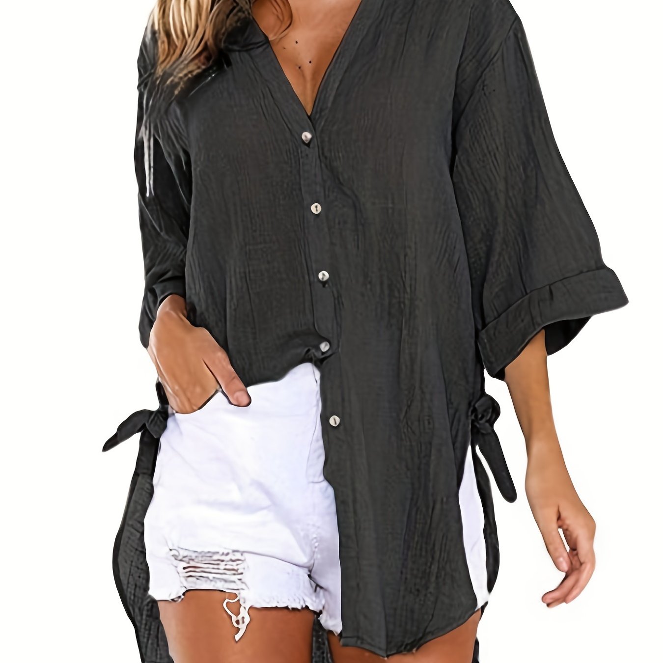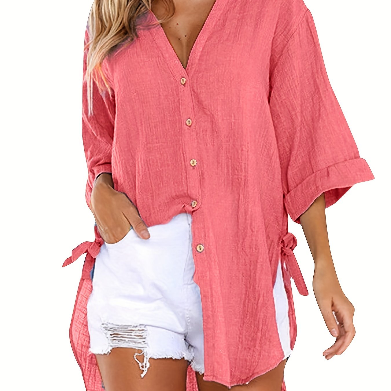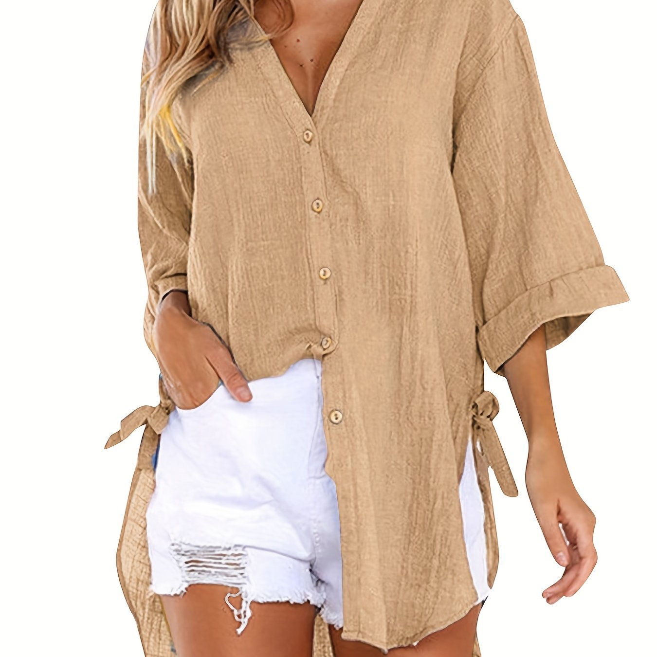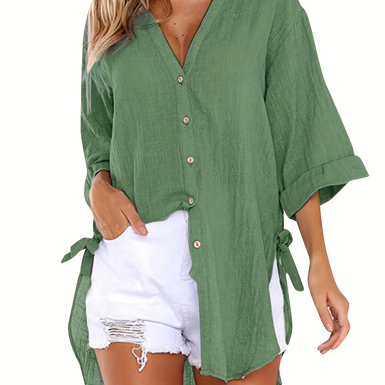 Emma - Casual blouse met korte mouwen en effen halslijn