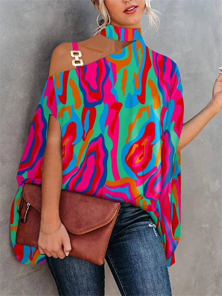 Estafania - Zomers t-shirt met vleermuismouwen en print