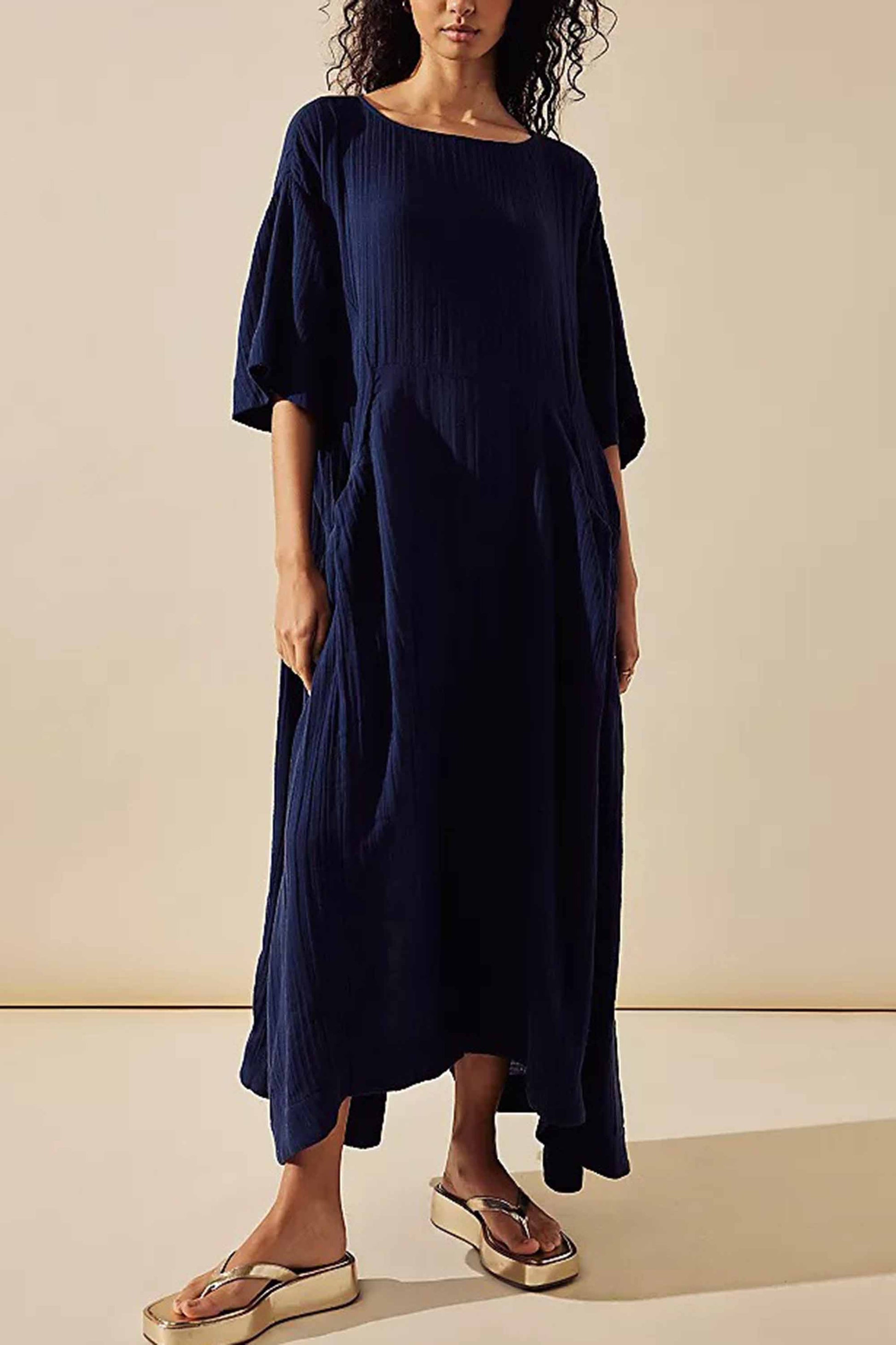 Melinda - Losvallende, trendy jurk met gekreukelde korte mouwen voor grote maten