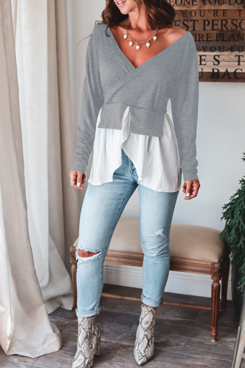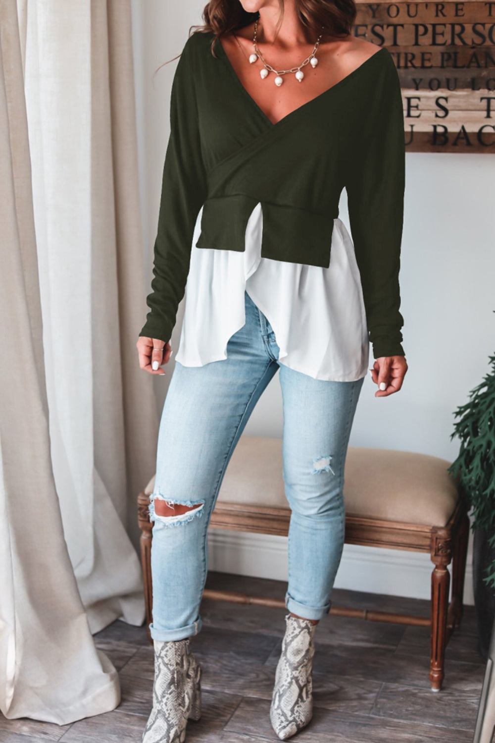 V-hals Gehaakte geruite bovenkant voor dames